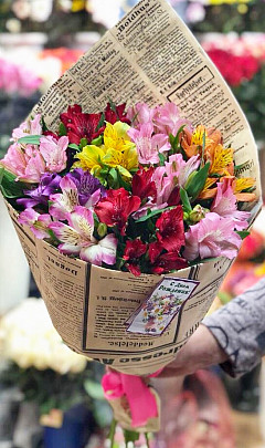 Букет «Ассорти» подкупает своей яркостью и разнообразностью цветовой палитры. Представленные здесь альстромерии разных цветов выражают хорошее отношение, дружбу и благодарность. Цветы универсальны и ненавязчивы, отлично подойдут для мужчин, в том числе коллег и друзей. Букет поможет принести извинения или порадовать человека незабываемым способом.